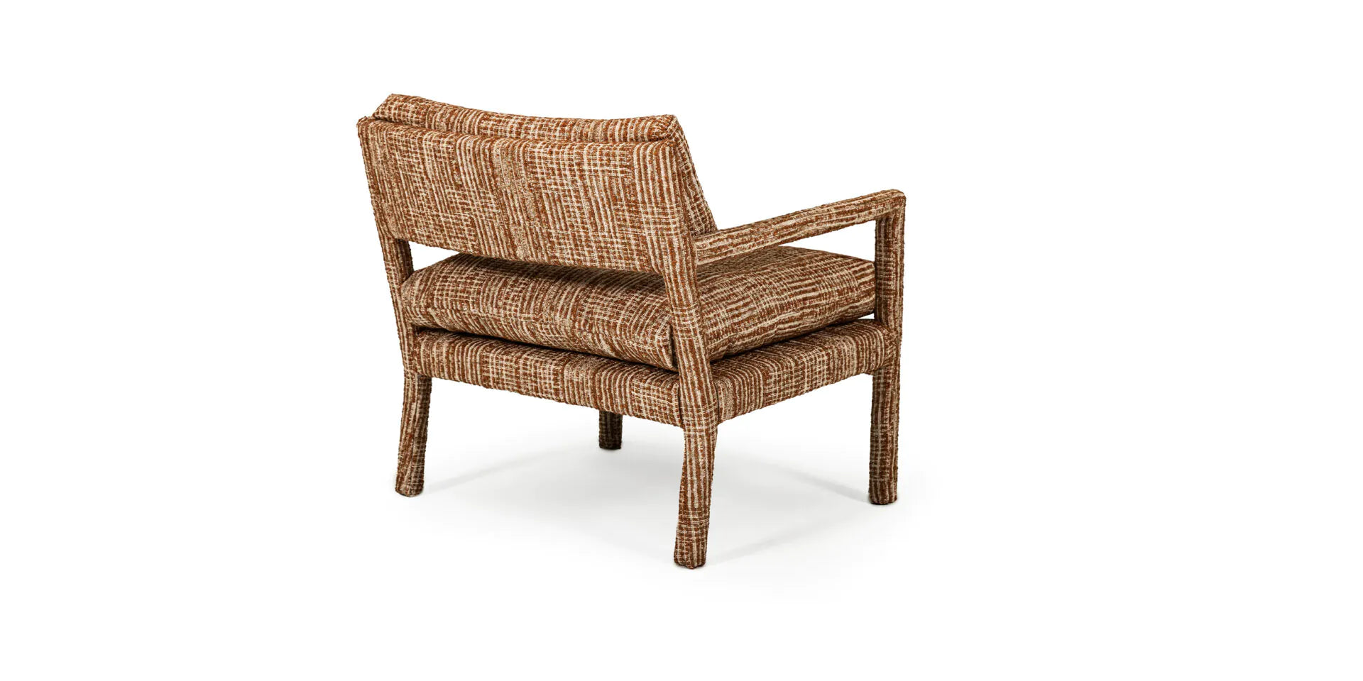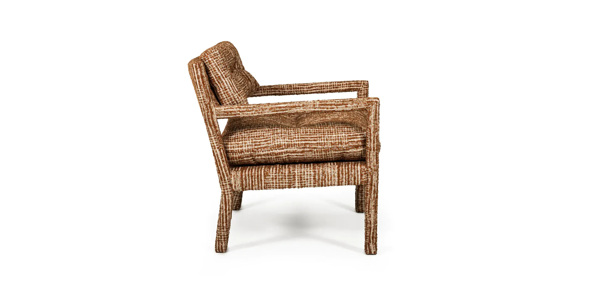 The Auric armchair showcases refined craftsmanship through the elegant contrast between its rigid, upholstered wooden frame and the plush volumes of its tufted cushions. With a minimalist silhouette and generous proportions, its design combines retro charm with modern sophistication—resulting in a timeless piece that’s both visually striking and inviting.