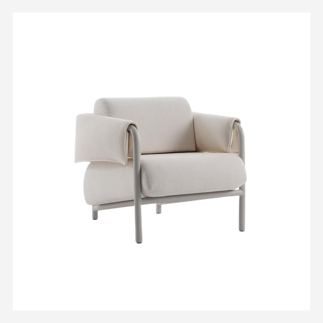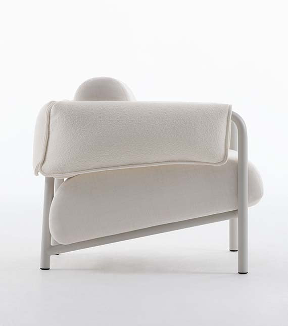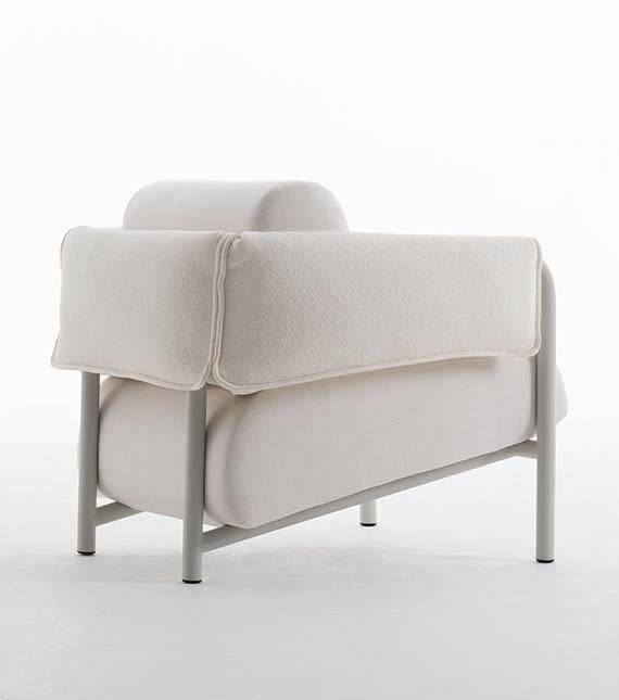 Designed by Bruno Debenetti, the Bold Armchair blends audacity and simplicity in a way that feels both sculptural and inviting. Its clean, confident lines are supported by a thick tubular metal structure, cradling plush cushions that offer a generous and immersive seating experience.
