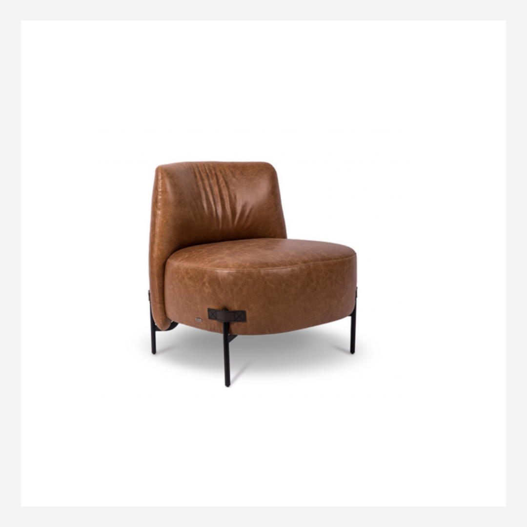 Sleek, compact, and full of character — the Breeze Accent Chair blends softness and structure in perfect harmony. Its rounded seat and gently gathered backrest offer relaxed comfort, while the visible metal frame adds an industrial edge. Wrapped in natural leather or premium fabric, Breeze stands out as a bold accent piece for hospitality spaces, reading corners, or stylish lobbies.