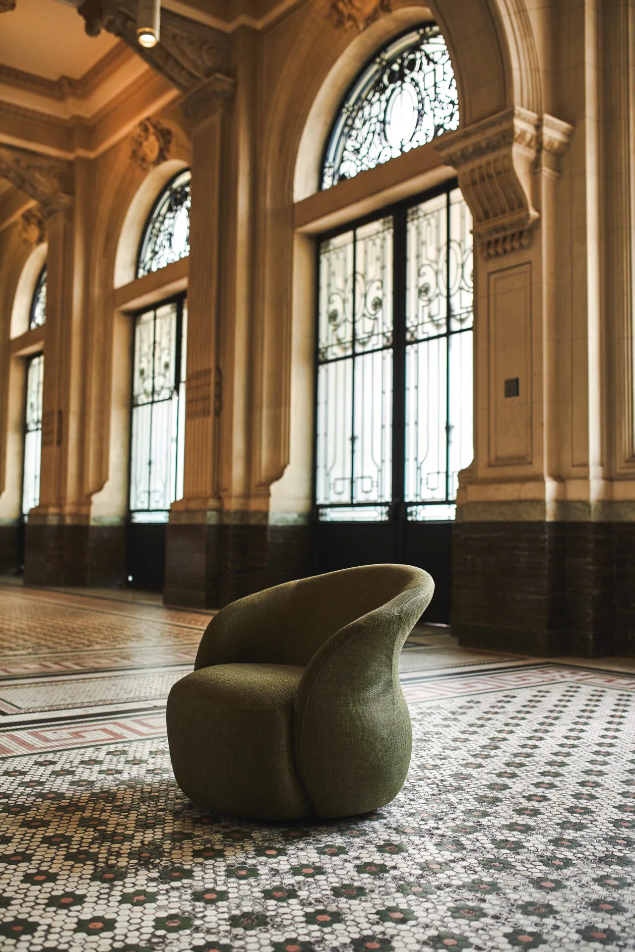 Catalunia Accent Chair — With organic curves and a sculptural silhouette, Catalunia adds a soft and artistic dimension to any space. Its enveloping design features a fixed seat and arms, paired with a swivel base in carbon steel or polypropylene. Ideal for lounge areas where comfort meets visual impact.