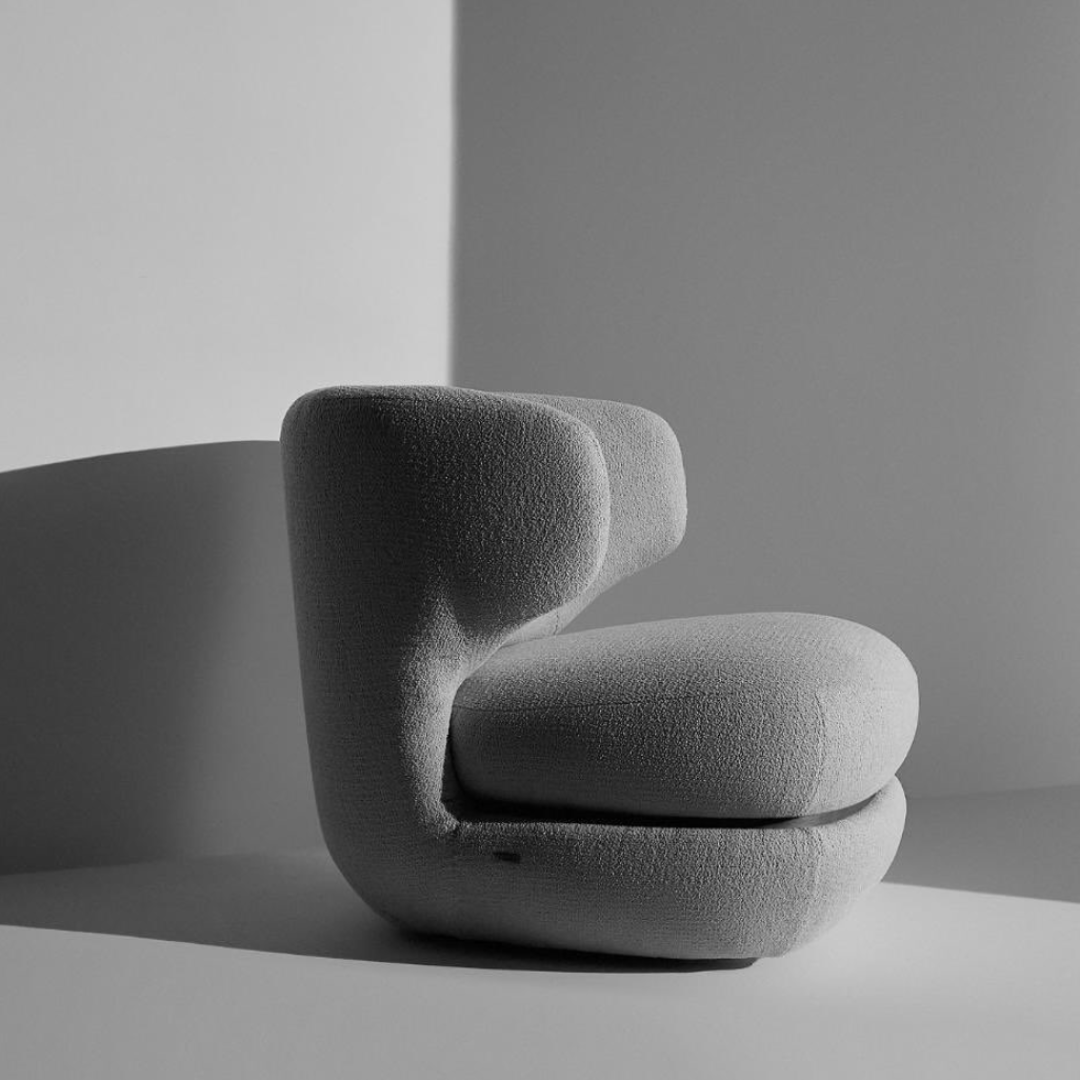 Designed by Maurício Bomfim, the Concha Accent Chair takes inspiration from the organic, protective shape of a seashell. Its enveloping curves and sculpted backrest create a cocoon-like feel — both elegant and intimate. With soft upholstery and a fluid silhouette, this statement piece is ideal for serene reading corners, boutique lounges, or curated hospitality environments where form and comfort are equally valued.