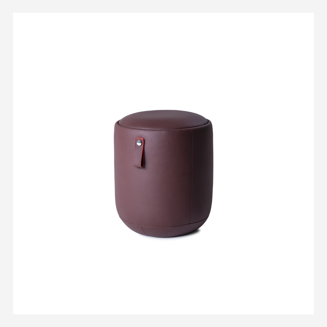 A charming and functional piece, Cuica Ottoman is designed with comfort and mobility in mind. Its cylindrical silhouette is complemented by a subtle leather handle detail, making it easy to move and adapt to different settings. Perfect for modern interiors, it offers a soft upholstered seat while keeping a clean and minimalistic aesthetic.