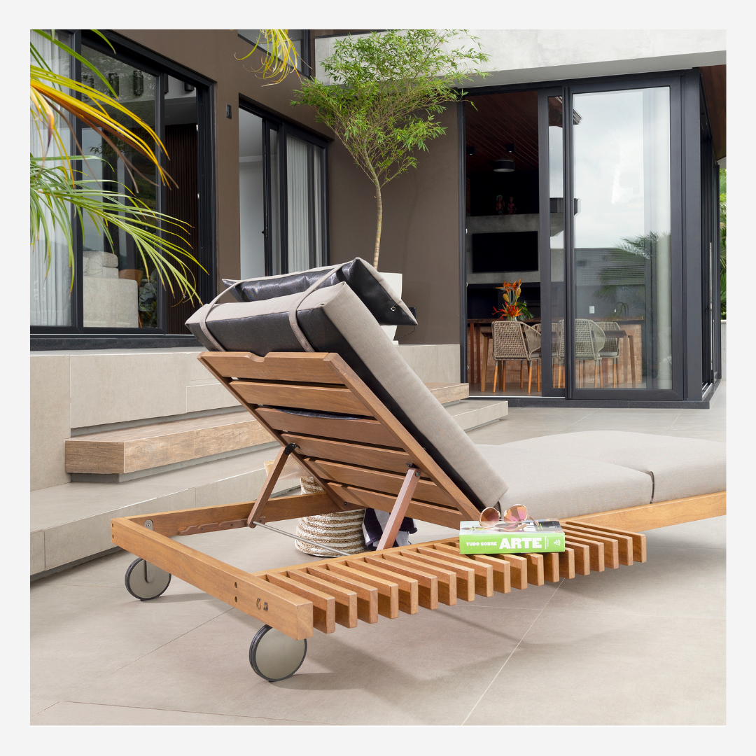 The Ripas Chaise Longue was created for elevated outdoor living, combining sleek architectural lines with the best of tropical hardwood performance. Made from Cumaru—a highly durable wood—and finished with Butzke’s exclusive EPS varnish, it delivers beauty, strength, and long-term resilience.