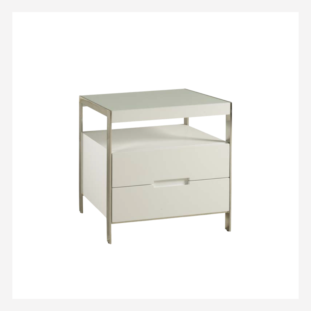 The Thor nightstand brings balance and functionality to sophisticated interiors. Its open top shelf and dual-drawer configuration offer versatility for everyday use, while the metal frame provides structure and visual lightness. A clean and modern design that fits seamlessly into contemporary bedrooms.