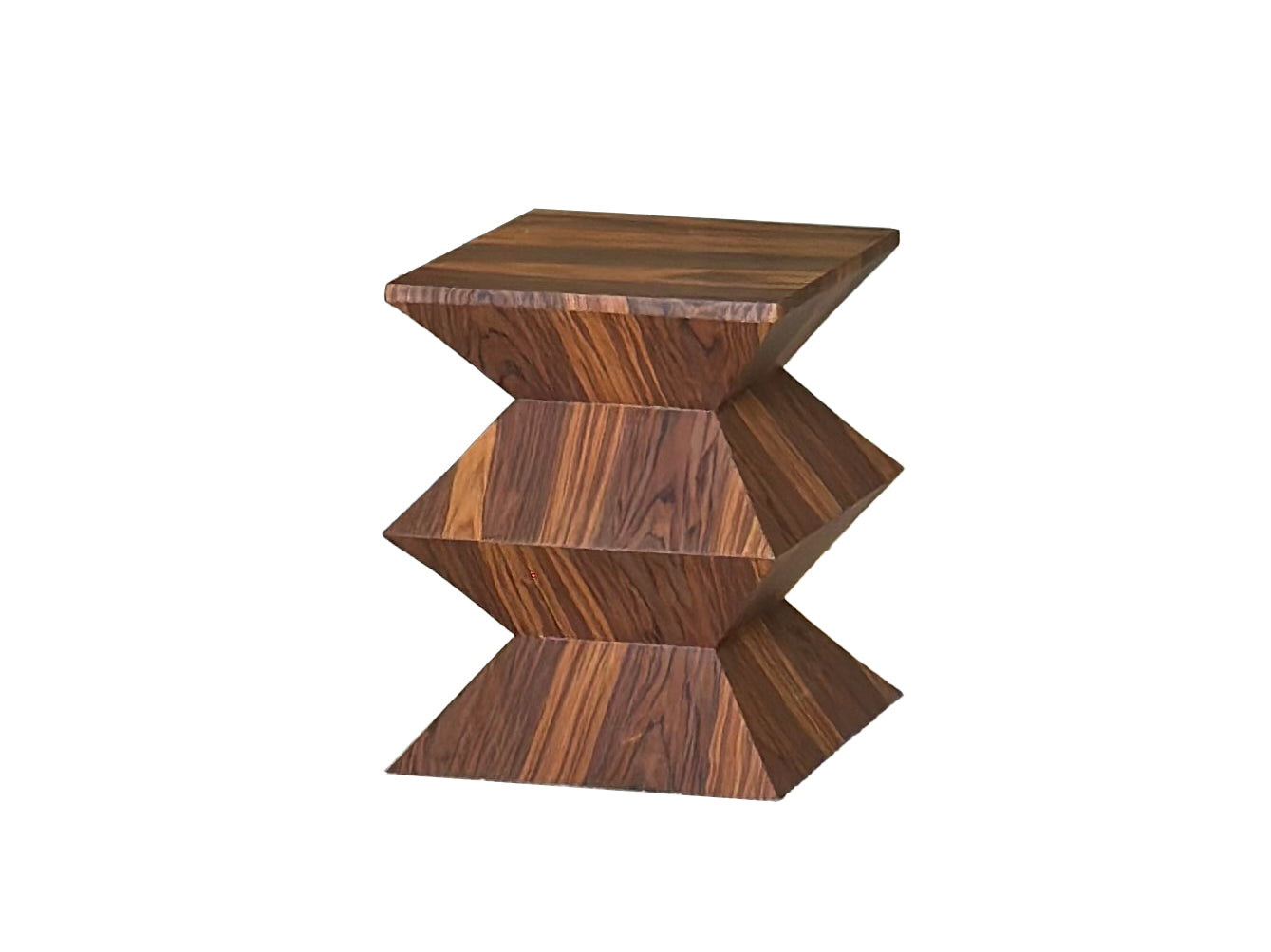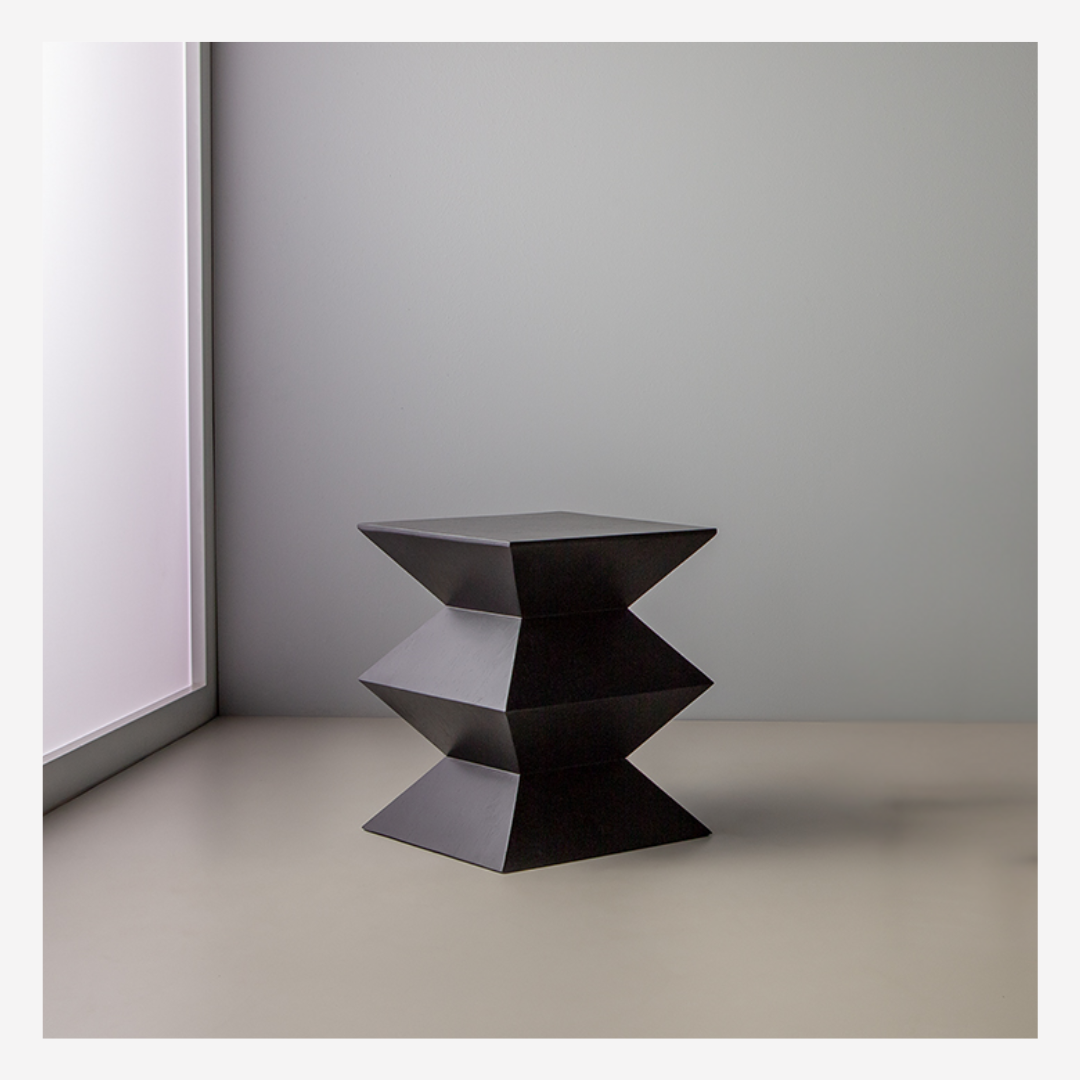 Bold and geometric, the Zig Ottoman stands out with its sculptural silhouette inspired by folded architecture. Crafted entirely in wood veneer, it serves as a compact accent piece that doubles as a side table or artistic statement. Ideal for modern interiors that value form as much as function.